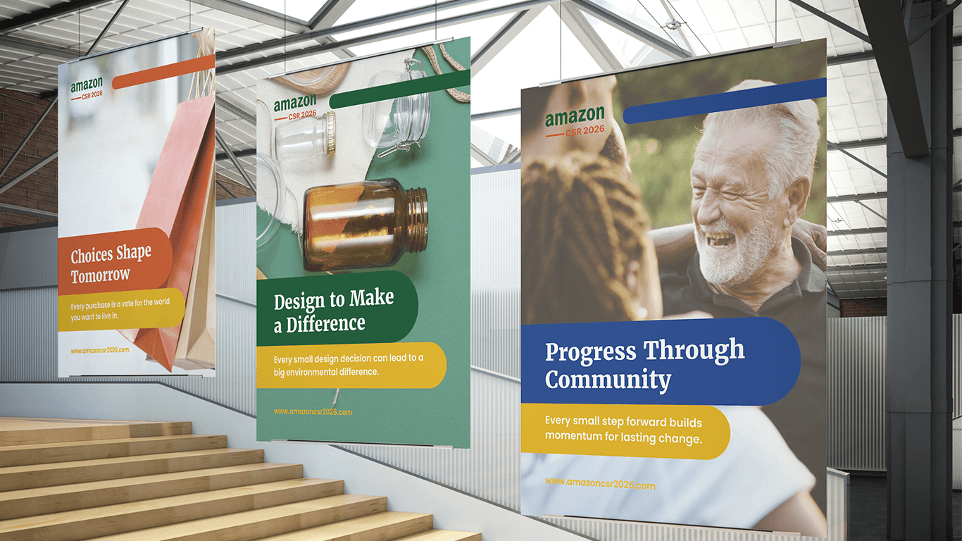 I created a modular design language combining organic shapes, bold typography, and warm color palettes inspired by nature. The unified system extends across print, digital, and environmental graphics to communicate responsibility, optimism, and trust.